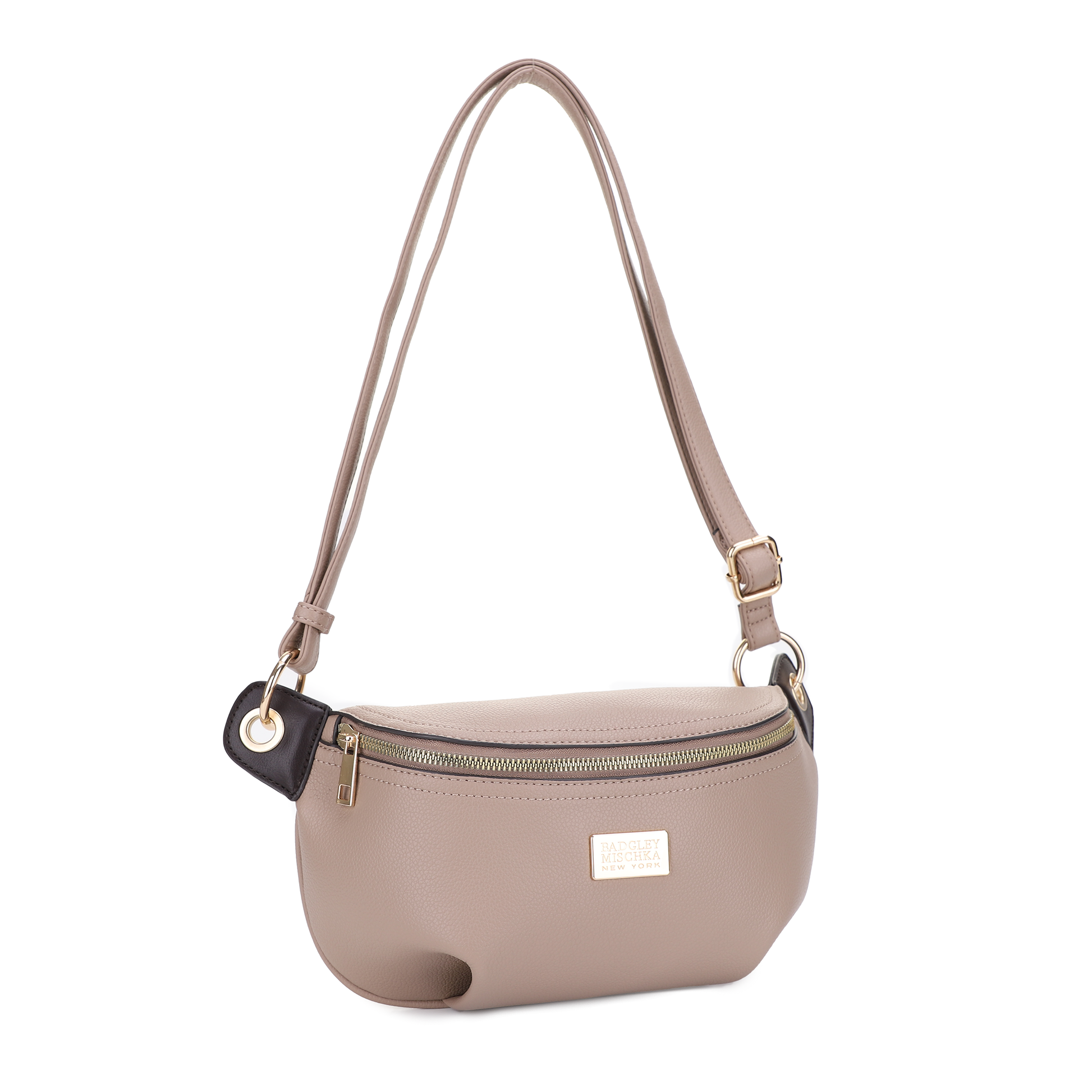 Sculptural yet understated, the Ardenne Collection moon bag in taupe faux pebbled leather adds an artful shape to your wardrobe. Gold chain details and an adjustable strap enhance its versatility while preserving the collection’s poised aesthetic.