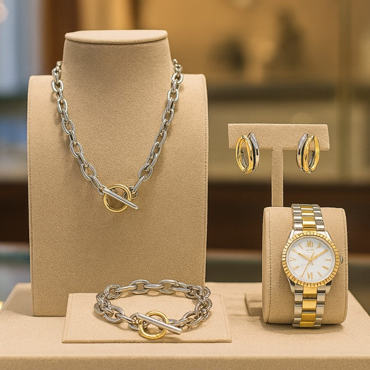 Textured links and a soft two-tone finish define the Bianca Collection, Dangle Link Earrings. Designed with butterfly push backs and stainless-steel ear pins, these earrings add graceful movement to your look.