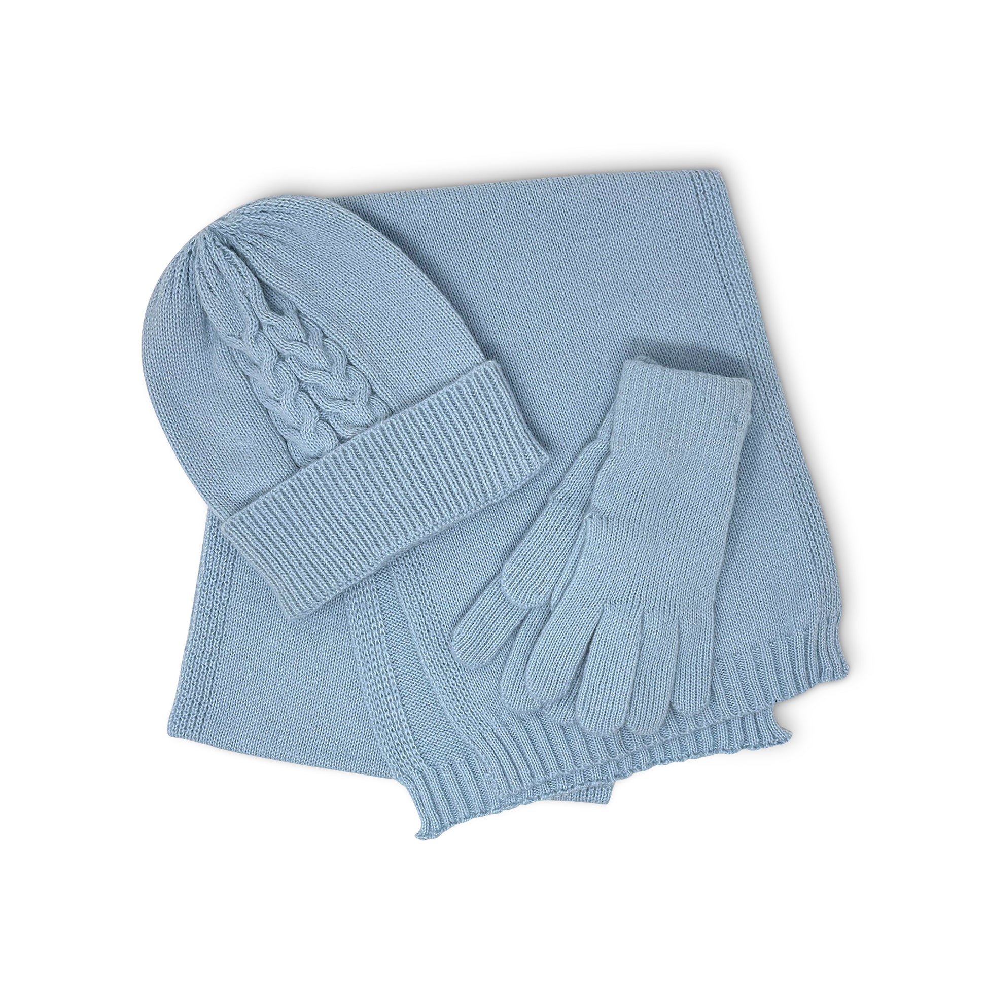 Cable Knit 3pc Beanie, Scarf, and Gloves Set