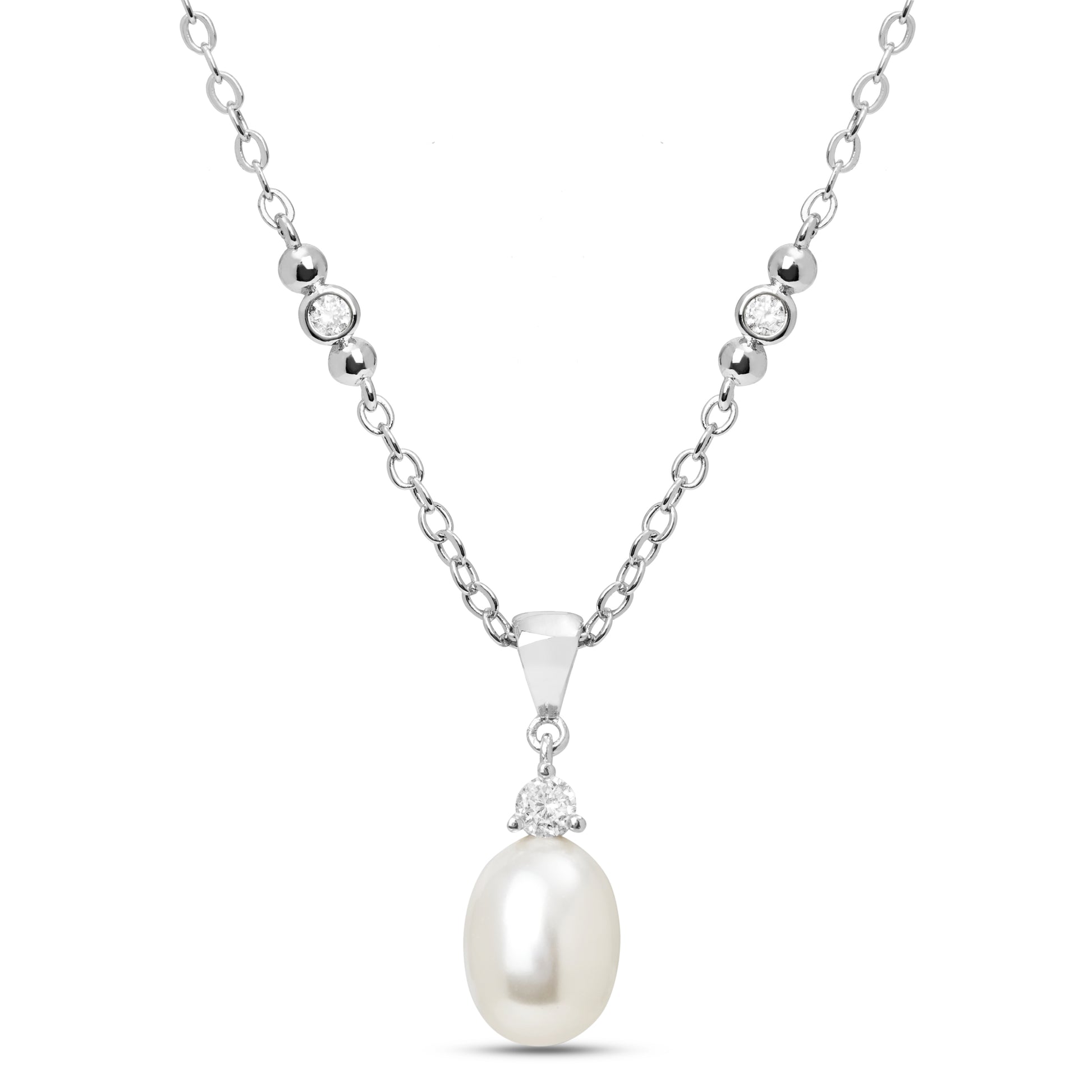 From the Classic Pearl Collection, this necklace features a single luminous synthetic pearl suspended beneath a crystal bezel on a rhodium-plated chain. Its 18" length with 2.5" extender adds versatility to this timelessly feminine piece.