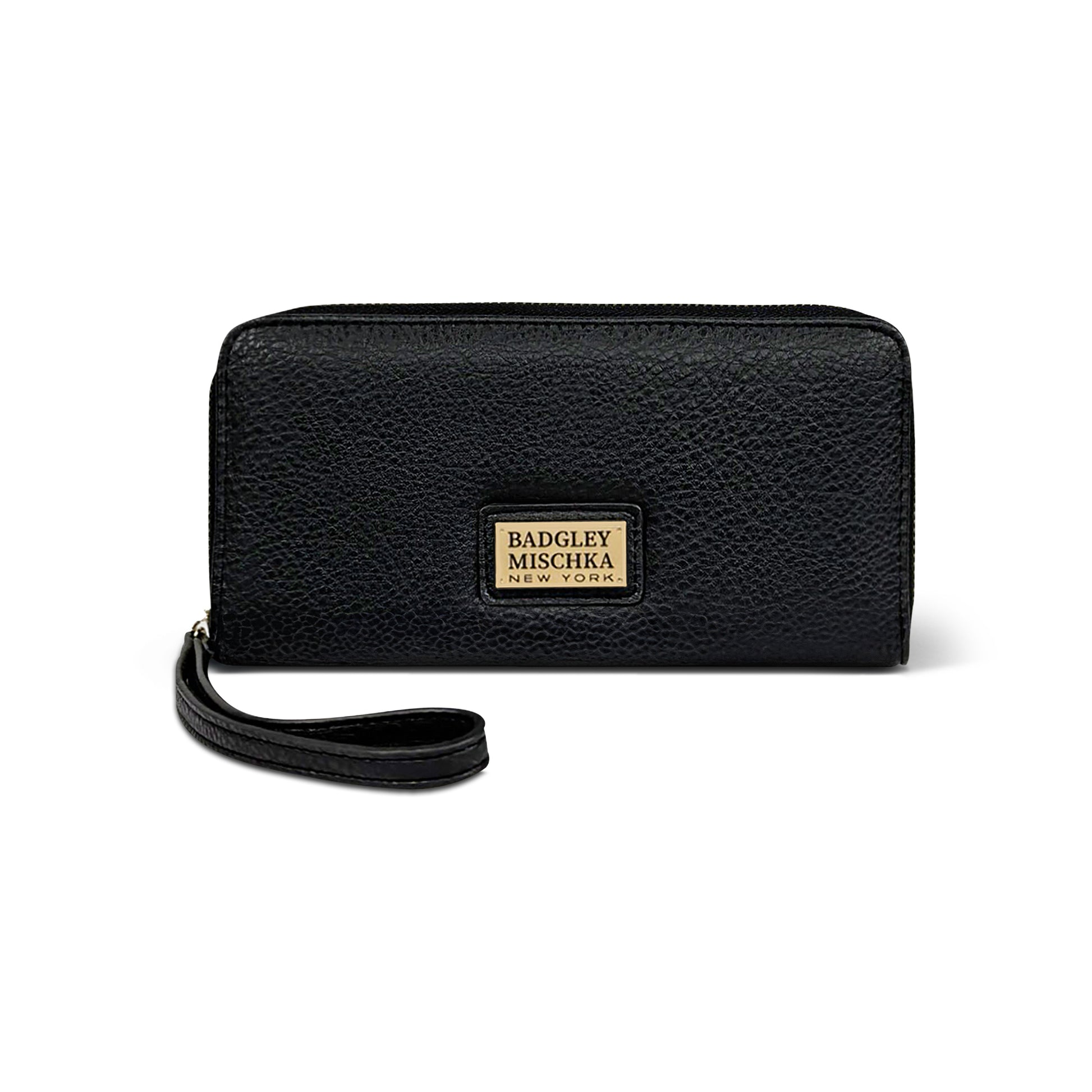 This versatile wristlet doubles as a wallet or clutch, finished in rich pebbled vegan leather with subtle gold accents. Compact yet organized, it carries cards, keys, and confidence wherever you go.
